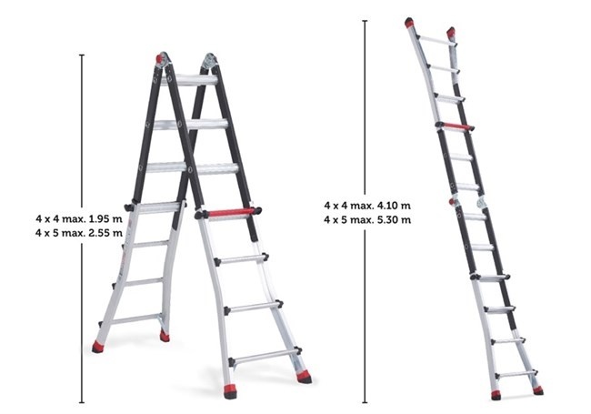 - Kann in A-Stellung oder Leiterstellung verwendet werden; perfekt für unebenen Boden